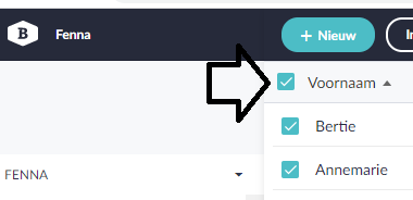 Vink bovenin het hokje aan: je selecteert nu met 1 klik alle vrijwilligers.