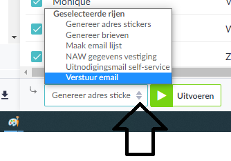 Selecteer onderin het scherm Verstuur email en druk daarna op: Uitvoeren.