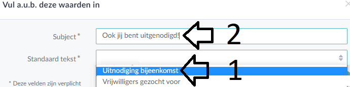 2: Geef een Onderwerp aan de mail zoals die zal verschijnen bij de vrijwilliger. In dit voorbeeld: Ook jij bent uitgenodigd!